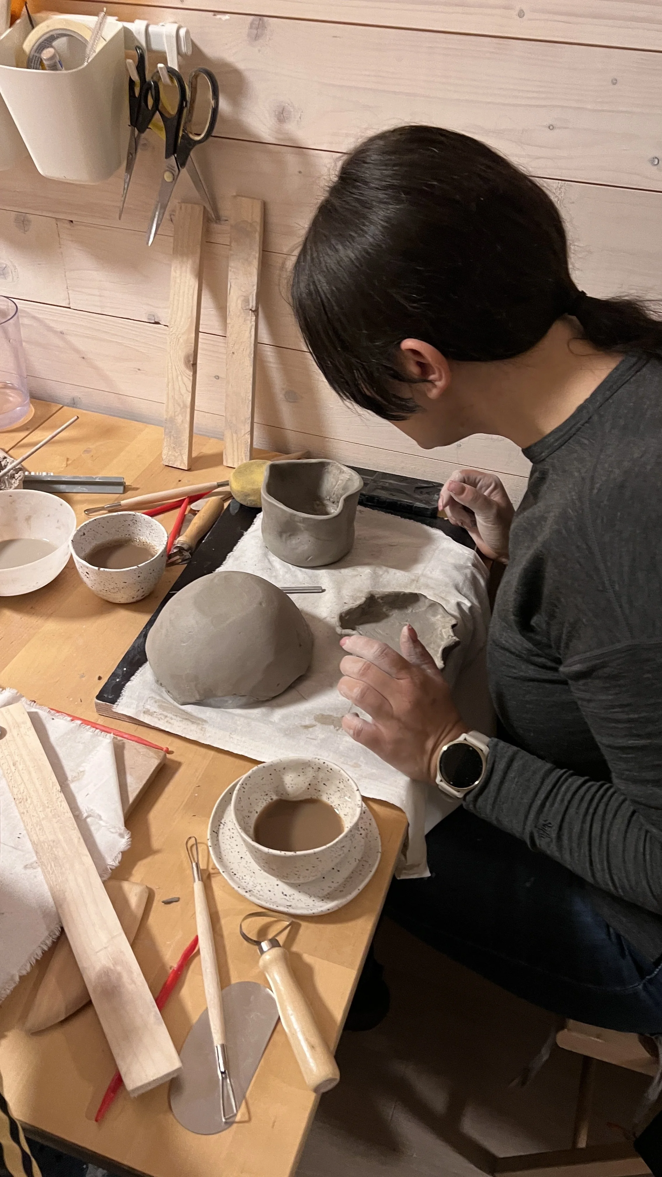 Teori og modellering: Vi begynner med en kort introduksjon til keramikk, hvor vi går gjennom ulike teknikker og stiler. Deretter går vi videre til modellering – hver deltaker lager sitt eget prosjekt, noe som gir rom for kreativt uttrykk. Deltakerne fokuserer på å forbedre prosjektene sine ved å legge til detaljer og justeringer. Etter dette møtet vil arbeidene bli brent, noe som gir dem varighet.